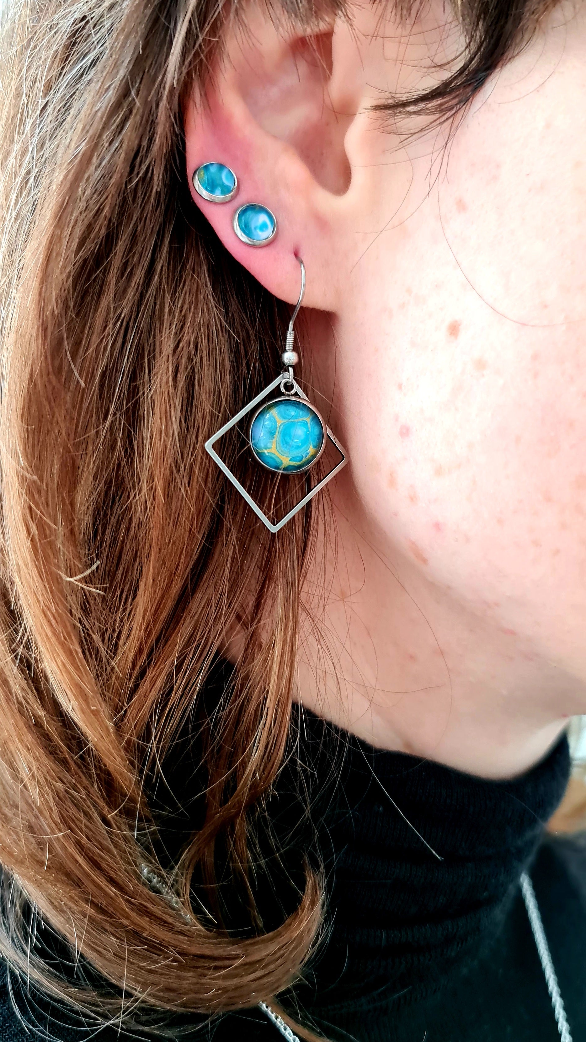 Tiny treasures with big impact. These stainless steel studs feature hand-painted glass cabochons — miniature artworks that catch the light and spark conversation. Lightweight, hypoallergenic, and endlessly versatile, they’re perfect for everyday wear or adding a pop of colour to any outfit.